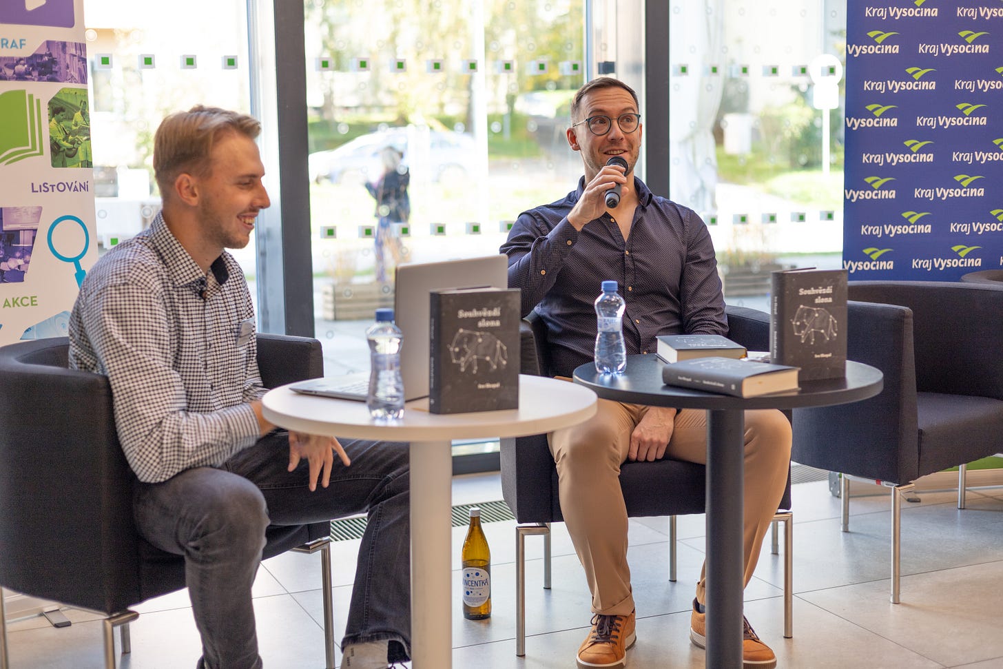 Poprvé jsem na veletrhu byl v roce 2022, s první knihou jsem měl besedu v jednom ze salónků místního kulturního domu. Těšil jsem se na to, jak se zase vrátím, s novou knihou, a besedu budu mít v nádherných prostorách Krajské knihovny Vysočiny. A ono se to podařilo. Celý víkend jsme prodávali naše knihy, bavili se se čtenáři, nasávali atmosféru. A taky jsme navazovali nové vztahy a přátelství s lidmi, kteří mají rádi knihy, rádi je čtou, píšou, nebo se nějakým způsobem podílejí na jejich vydávání. Všichni jsme byli součástí té obrovské skupiny lidí, které spojuje láska k literatuře a knihám. V celém městě to bylo cítit.
