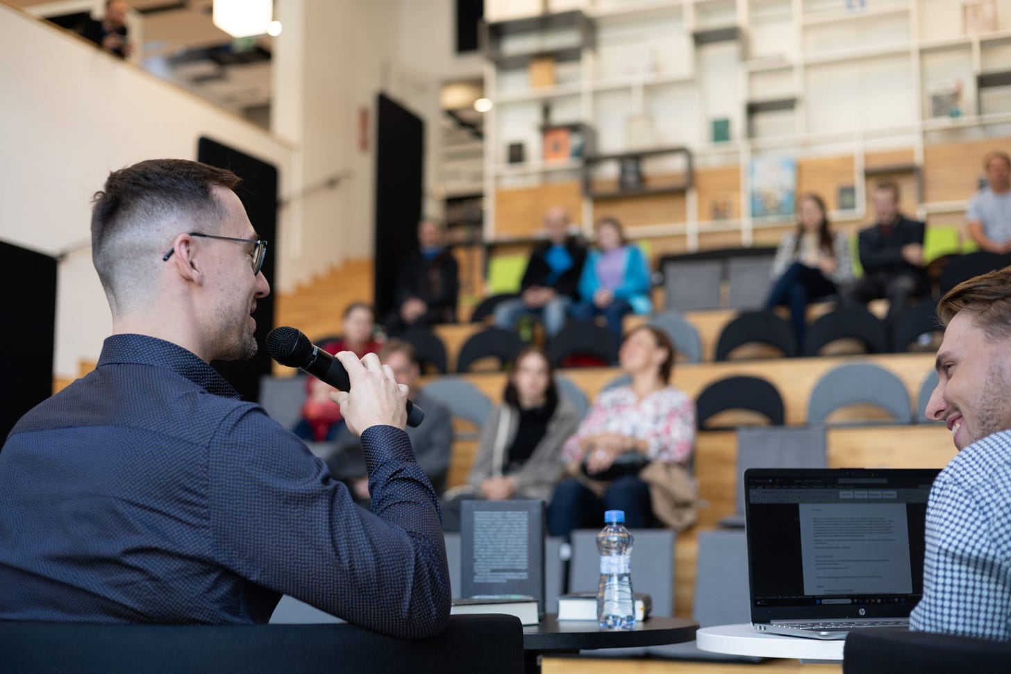 Společně se začínajícím autorem Lukášem Zárybnickým jsme prodávali knihy na knižním veletrhu, oba si stoupli před mikrofon, četli z našich knih a vyzkoušeli si, jaký je to pocit. A bylo to moc fajn.